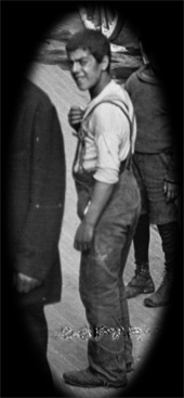 Take a look at the young man in the center lower part of the picture--white shirt with suspenders, maybe 14 or 15 years old.